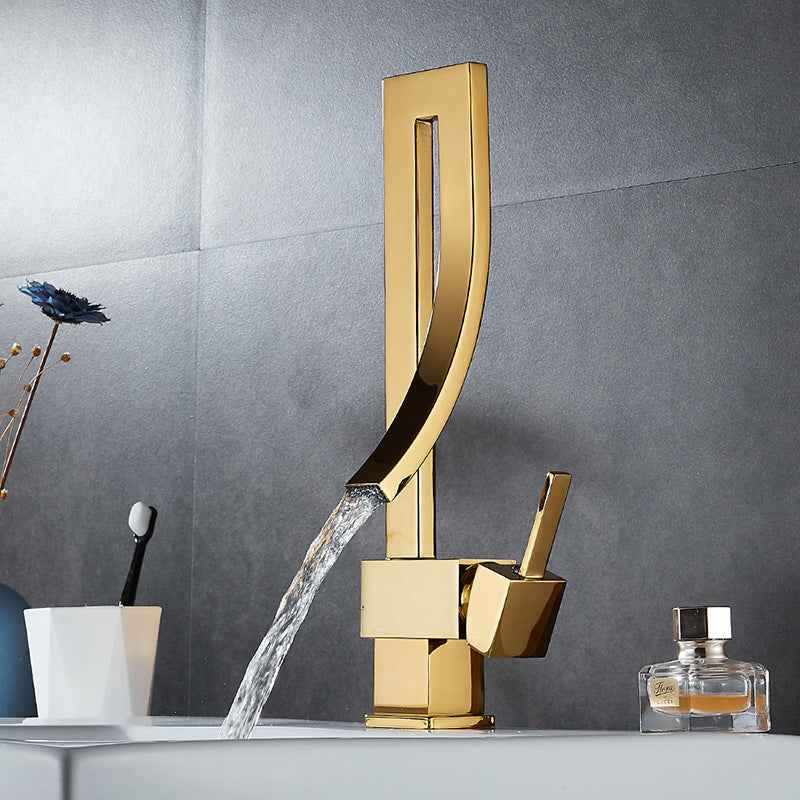 Mitigeur de lavabo doré en cuivre avec mitigeur eau chaude et froide au design moderne